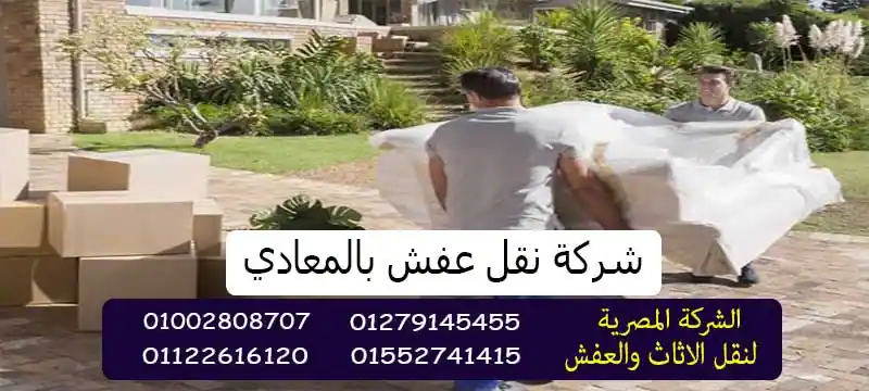 لكي تحصل على خدمة نقل عفش متميزة. و نحن نوفر لك افضل خدمات نقل الاثاث بأحدث الطرق والأساليب الممكنة للمحافظة على اثاث منزلك من حدوث كسور أو خدوش العفش اثناء اتمام المهمة. وذلك من خلال طاقم من العمالة المدربة علي أعلي مستوي وذات كفاءة عالية وخبرة طويلة في مجال نقل العفش بالمعادي. لا تدع الحيره ترهق ذهنك مساله انتقالك مع الشركة المصرية لنقل الاثاث سوف تنتهى فى بضع ساعات شركتنا من أسرع شركات نقل الاثاث بالمعادى اطمن ولا تشغل بالك و تتحير فلدينا سيارات و اوناش و حوامل و رافعات لكي نحافظ على أثاث بيتك و ننقله فى الوقت الذى تحدده ستجدنا معك
